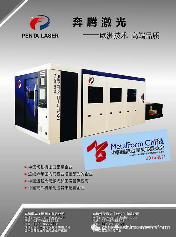 2014金属成形展钣金展商-奔腾楚天激光展出最新光纤激光切割机,展位号J15.