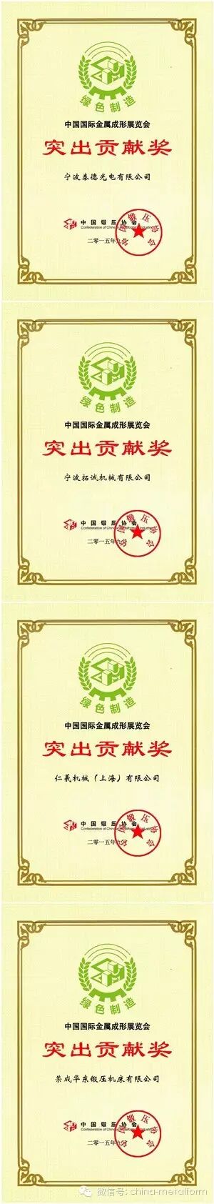 中国国际金属成形展展览会及同期配套会议自2004年创办,邀请国内外一流的企业参展、讲演和参观业内标杆企业,促进行业进步。 如今,这项活动已经走到了第十届,累计有800多家展商参展,携带最新、最适用的产品进行展示,贡献了500多场精彩的讲座,累计有15万的专业观众参观,大约4万多行业人士听取了各种讲座,约5000多人通过这个平台参观了30多家标杆企业,从中受益。 为了感谢这十二年来众多展商、讲座企业、被参观企业以及地方协会和地方政府的支持,我们决定在第十届的展览会现场,对下述参与度活跃的企业和组织给与表彰,感谢他们为行业进步和交流做出的杰出贡献! 冲压篇之一: