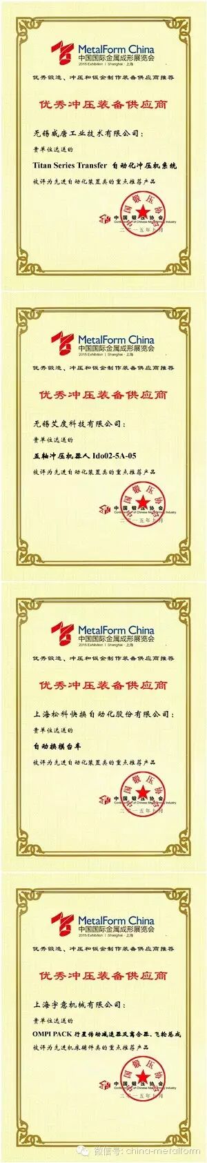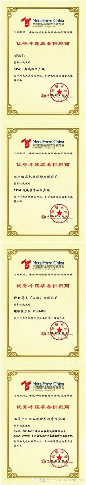 向会员、观众和潜在的购买者推荐优质的装备是中国锻压协会和中国金属成形展览会义不容辞的责任。2014年9月在北京举办的金属成形展上协会启动了这项推荐工作,共推出35家展商的15类共计53个型号的展品,颁发了奖杯,并在展览会前后进行了广泛的宣传,获得了业内的好评。 根据一些展商的反馈,今年主办方将扩大征集和推荐的范围,让除主机厂之外的供应商也能加入供应商推荐的队伍;并邀请中国锻压协会行业研究室和行业主流媒体《锻造与冲压》、《钣金与制作》杂志共同参与,增加本次活动的权威性和宣传覆盖面。 冲压篇
