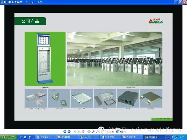 7.公司产品 公司产品有:各类精密钣金件、机箱机柜、精密零部件、电子组装整机等。这些产品广泛应用于通讯、纺织、金融、广告、市政、安防、工控设备、教学设施、舞台灯光、专业音响等行业。客户遍布中国大陆、港澳台、欧洲、美洲、中东及东南亚市场。