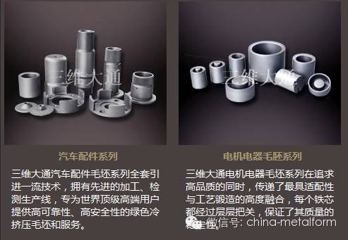 中日合作浙江三维大通冷挤压有限公司(原海盐三维冷挤压成型有限公司)是目前中国集冷挤压、冷锻、冷温精锻技术与一体的最专业、产品质量一流的国家高新技术企业。 主要产品
